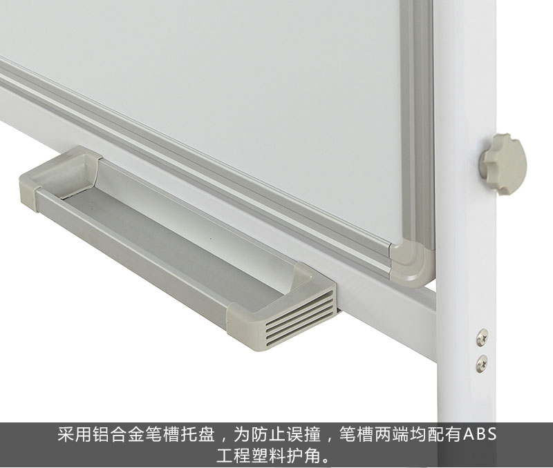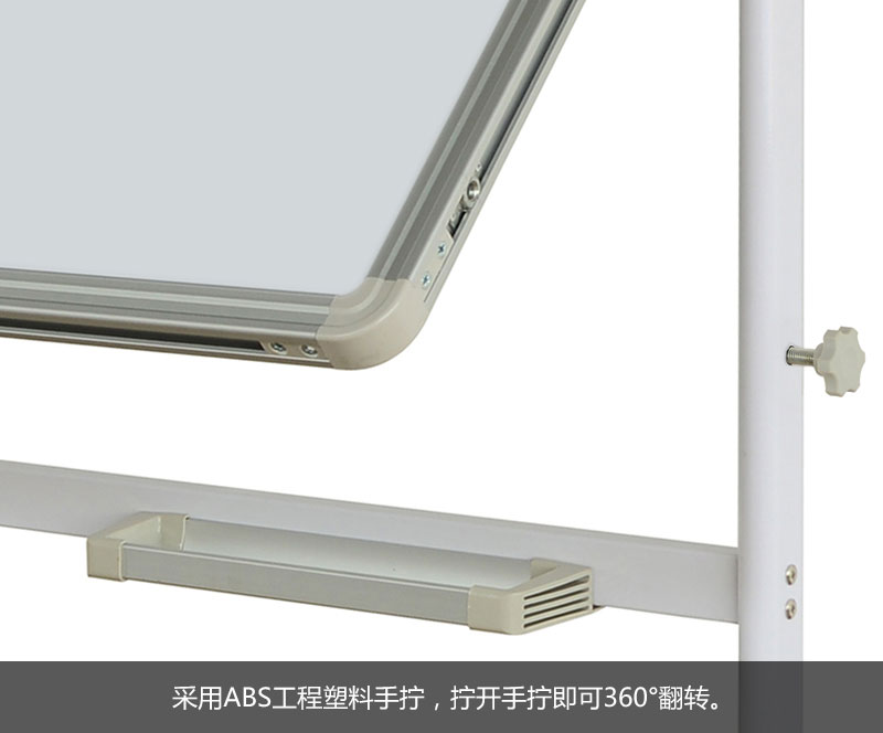 9、易用性:架子两端各配有两个手拧,一个用于固定,一个用于翻转。当一面写完后,拧出两端手拧,即可翻转白板。