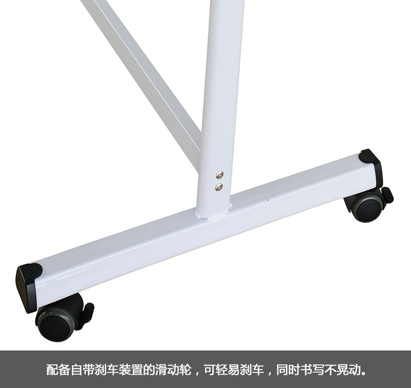 架子横梁安装高强度铝合金笔托,长300mm71mm,铝合金笔槽壁厚≥1.0mm,ABS工程塑料笔托包角,配有4个高强度工程双刹轮。