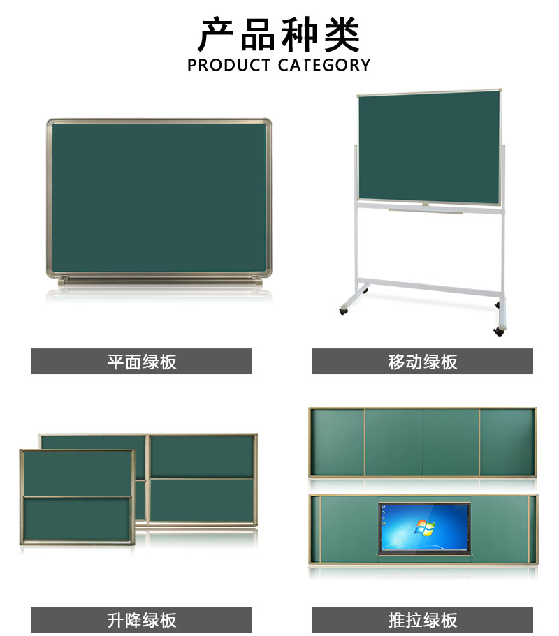 黑板板体美观,结实耐用;采用优势绿面板作为黑板的书写面,绿色环保,易写易擦;