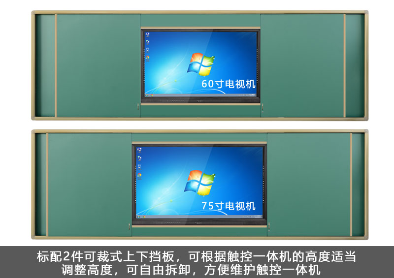 组合推拉黑板,又称复合推拉黑板、左右推拉黑板,可嵌入通用的各款触摸电视机或电子白板,