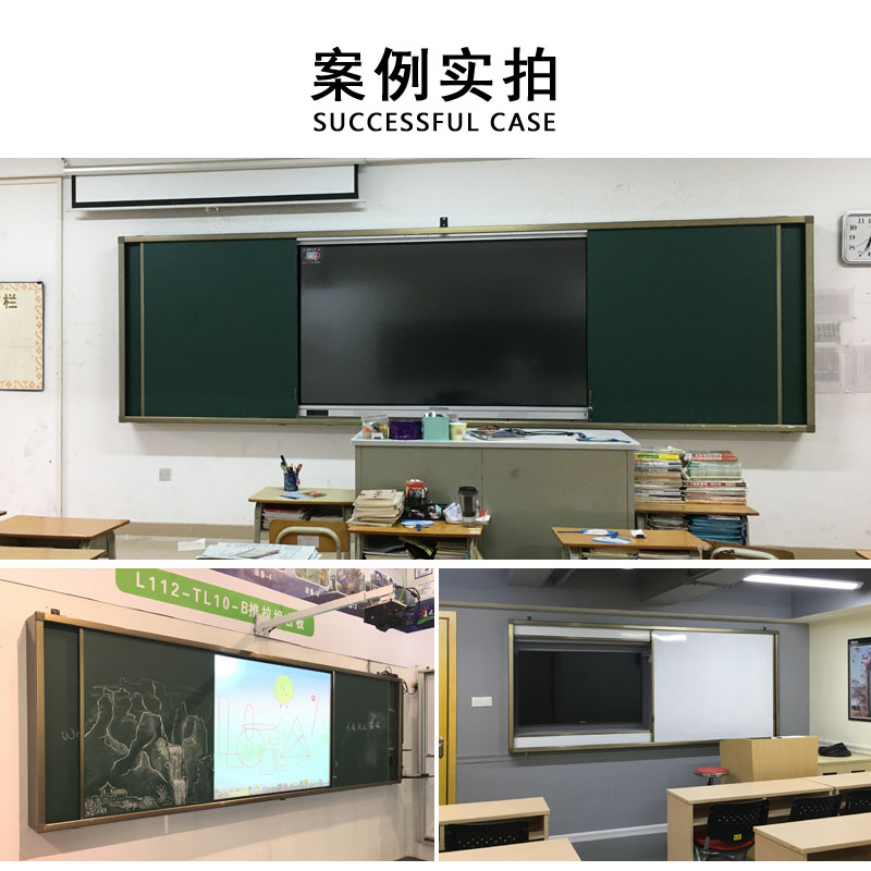 可通过滑动前面的黑板,实现传统教学与现代多媒体教学的完美结合。本系列产品采用优质铝合金边框,