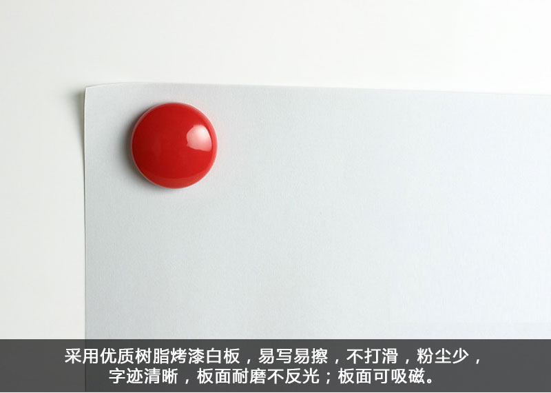 板面可吸附磁粒、磁条。无拼缝,板面均附有原厂保护膜。符合GB/T 28231-2011《书写板安全卫生要求》