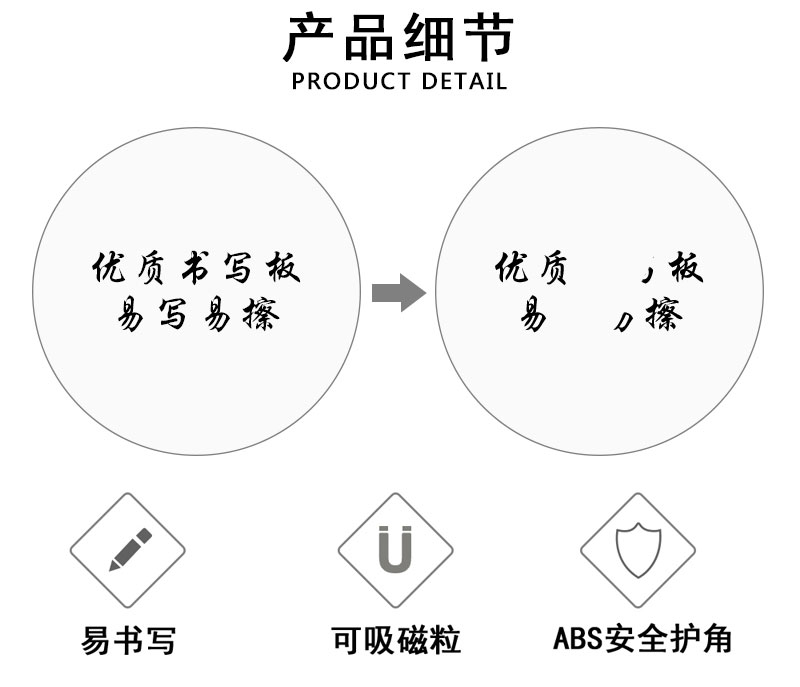 板面可吸附磁粒、磁条。无拼缝,板面均附有原厂保护膜。
