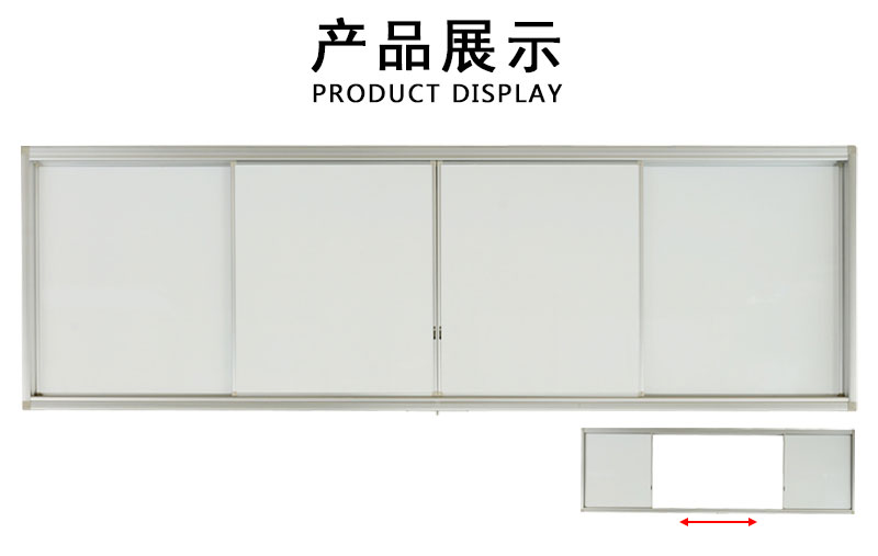 2、基本结构:左右推拉结构,由两件固定白板和两件移动白板组成。