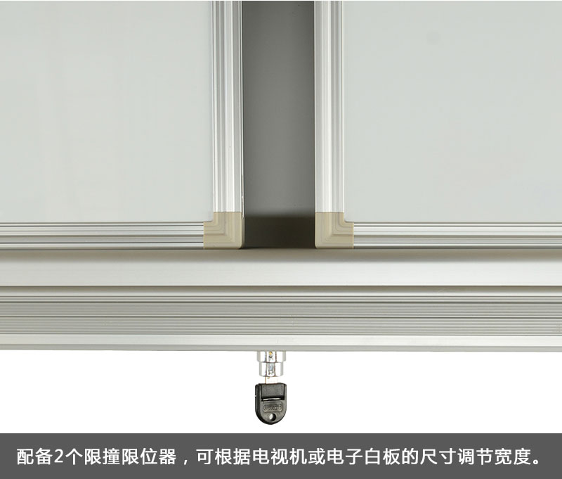 1、外形尺寸:外径约4000mm×1310mm×95mm(注:适配84寸或以下电子白板);配套的活动白板装备自带锁装置,完全遮挡教学一体机后保护并可锁定。