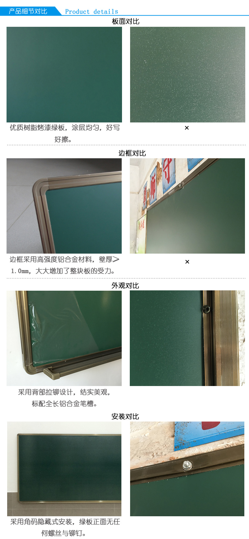 、有些马口铁皮烤漆做成黑板板面.有的甚至用劣质塑料板做成黑板板面,很容易生锈、掉漆、寿命短。